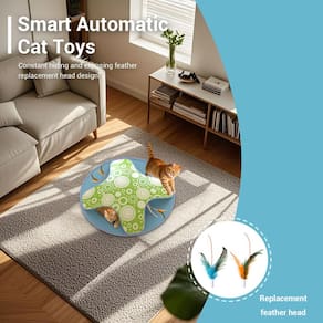 —?Motor ultrassilencioso e acessórios de penas substituíveis?Projetado para brincadeiras tranquilas, o motor de baixo ruído não perturbará sua casa. Troque acessórios de penas substituíveis (vendidos separadamente) para refrescar a diversão — ideal para brinquedos de longa duração para gatos que crescem com a curiosidade de seu animal de estimação