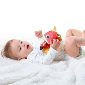 Brinquedo colorido, com efeito treme-treme, fácil de levar aonde quiser. Tem clipeuniversal, mordedor macio e várias texturas para estímulo tátil do bebê.