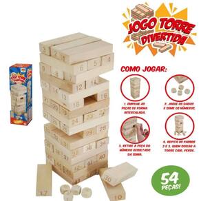 Conteúdo Da Embalagem: - 1 Jogo Torre Divertida ( 54 peças retangulares de madeira e 4 dados de madeira)