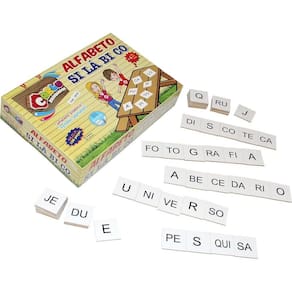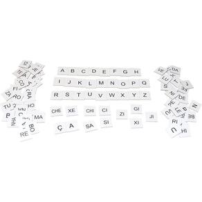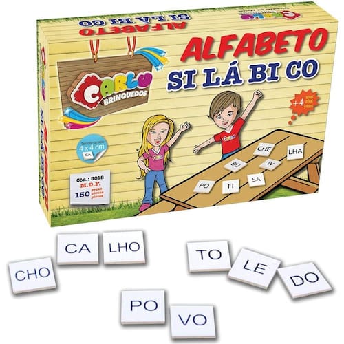 composto por sílabas e letras, serigrafado com tinta ultravioleta atóxica.