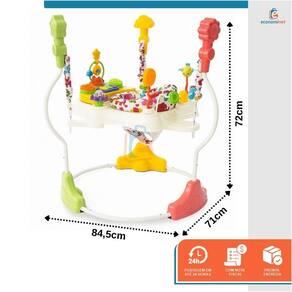 - Bandeja musical removível; - Mesa de atividades equipada com brinquedos removíveis; - Assento giratório; - Possui a função jumper para a criança pular; - Regulagem de altura em 3 posições.