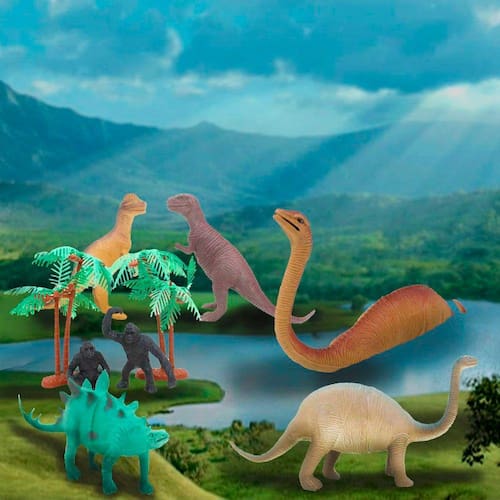 Brinquedo Kit 11 Dinossauros Selva Em Miniatura De Borracha -