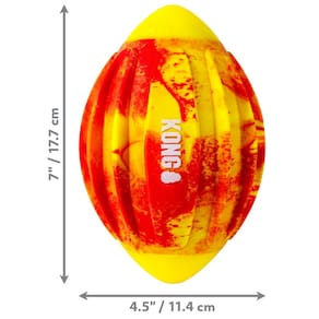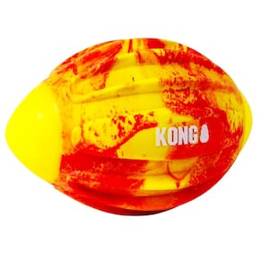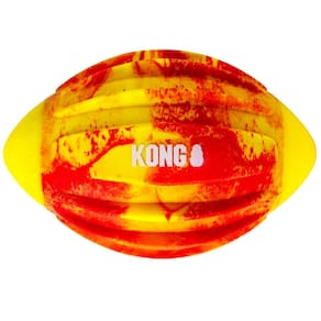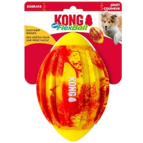 O KONG Flexball Sport Football é um brinquedo interativo projetado para cães que adoram correr e brincar. Com um formato de bola de futebol, este brinquedo oferece diversão e resistência, ideal para brincadeiras ativas.