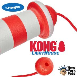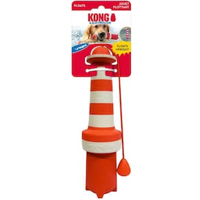 KONG Lighthouse by HOGZ é um brinquedo desenvolvido para cães de mordida leve/moderada. É desenhado para brincadeiras aquáticas, com um design projetado para os amantes de água. Flutua com o topo para cima, na posição vertical, estimulando ainda mais os instintos dos cães ideal para jogos de buscar na praia, lago ou piscina.