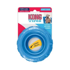 Brinquedo Kong Tires Puppy G Porque aconselhamos: - Esse brinquedo foi desenvolvido para ajudar a manter a higiene bucal dos filhotes e aliviar a irritação de dentição nas gengivas; - Pode ser preenchido com ração e petiscos ou com pasta de dente especial para cães; - Perfeito para brincadeiras de busca, foi produzido com material flexível que oferece uma resistência que estimula a mordida;