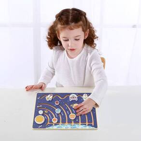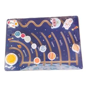 brinquedos de labirinto orbital coloridos com tema de oito planetas para crianças. o planeta pode ser movido para a órbita correta. órbitas com diferentes