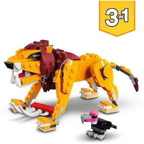 Brinquedo LEGO 31112 Creator 3 em 1 de leão selvagem, avestruz, javali e estatuetas de animais para crianças a partir de 7 anos - O leão selvagem - Os 3 brinquedos de animais são todos muito fáceis de colocar: o leão pode mover suas pernas, cauda, cabeça e mandíbula, e o avestruz pode mover seu pescoço e pernas - O javali também pode mover suas pernas, cabeça e mandíbula, e o abutre pode ser utilizado com todos os 3 modelos para que as crianças se divirtam ainda mais em suas aventuras na savana - Idade recomendada pelo fabricante: 7+ - Número de peças: 224