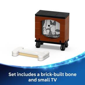 - Conjunto criativo – Este brinquedo de construção inclui um osso construído em tijolos e uma pequena TV com tela para inspirar histórias imaginativas e aventuras de cachorrinhos