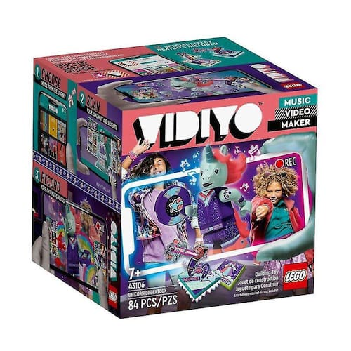 Abra o mundo da criação de videoclipes para crianças que adoram dançar e se apresentar. Este LEGO® VIDIYO™ Unicorn DJ BeatBox (43106) torna cada momento de jogo emocionante. Baixe o aplicativo para escanear a minifigura da música e revelar a personalidade de palco bacana do DJ unicórnio. Em seguida, escaneie os BeatBits para desbloquear efeitos especiais, desafios e muito mais, enquanto as crianças produzem seu próprio videoclipe exclusivo, para compartilhar com outros criadores no feed social seguro para crianças.