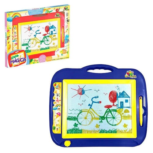 Atenção: imagens meramente ilustrativas:Contém:1 un - brinquedo lousa mágica para desenhar infantil - azul.Vamos colorir juntosCom essa lousa podemos criar vários desenhos e formas de variadas com muita diversão.Pra a criançada usar a sua imaginação e como em um passe de mágica fazer tudo desaparecer.Já pensou que incrível eles irão amarO brinquedo estimula a criatividade e desenvolve a coordenação motora.Garanta já o seuCaracterísticas do produto:- confeccionado em material plástico.- com alça de mão.- com uma caneta mágica para escrever na lousa.- com uma alavanca para apagar e corrigir.- com uma super tela com 4 cores.Medidas do produto:35 cm comprimento.28 cm largura04 cm profundidadeProduto certificado:Registro inmetro: 005964/2019Atenção: para evitar o perigo de asfixia, manter estar embalagem longe do alcance de crianças.- não recomendado para menores de 3 anos.