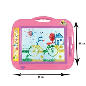 Atenção: leia atentamente a descrição a baixo :As cores do produto podem variar de acordo com as ilustrações ou fotos pois são computadorizadas podendo variar levemente da cor do produto.Vamos colorir juntos podemos criar vários desenhos e formas variadas.Pra você usar a sua imaginação e como em um passe de mágica fazer tudo desaparecer.Já pensou então agora a brincadeira vai começar.Corra e garanta já o seu.Contém:1 un brinquedo lousa mágica para desenhar infantil .Ref.: zf3102 Características do produto:- confeccionado em material plástico.- com alça de mão.- com uma caneta mágica para escrever na lousa.- com uma alavanca para apagar e corrigir.- com uma super tela com 4 cores.Medidas do produto : 35 cm de largura.28 cm de comprimento.4 cm de altura.Produto certificado pelo inmetro:005964/2019Opc 0098Atenção para evitar o perigo de asfixia, manter estar embalagem longe do alcance de crianças.Não recomendado para menores de 3 anos.