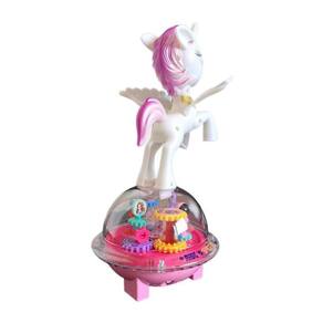 Música Alegre: O unicórnio toca músicas alegres que vão encantar e animar as crianças. A música cria um ambiente divertido e envolvente para brincar.