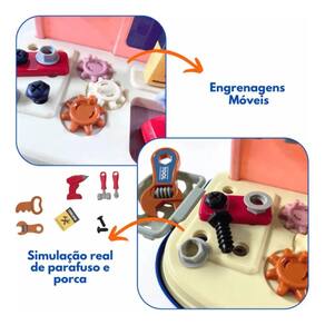 Maleta Oficina Mecânica Infantil 24 Peças Diversão educativa para pequenos engenheiros que adoram montar e desmontar! - Por que você vai adorar: • Estimula a criatividade e habilidades manuais • Brincadeira educativa que explora o universo da mecânica • Maleta prática, compacta e fácil de transportar • Design colorido e atrativo para as crianças • Dimensões aberta: 25cm (altura) x 18cm (comprimento) • Dimensões fechada: 13cm (altura) x 18cm (comprimento)