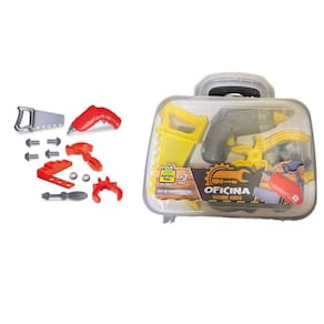Detalhes do Produto: Conteúdo Embalagem:1 Chave de fenda, 1 Martelo, 1 Serrote, 4 parafusos, 1 alicate, 1 furadeira, 2 porcas e 01 Suporte para Parafuso. Idade Recomendada: acima dos 3 anos