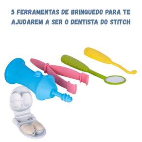 Conteúdo da Embalagem: 1 Stitch Dentista, 05 Potes De Massinhas, 05 Acessórios De Dentista