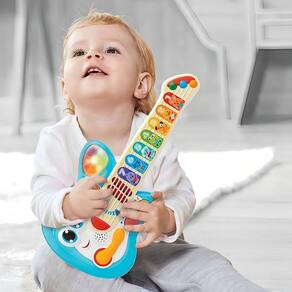 - Guitarra para bebês com botões de toque suave e luz intermitente
