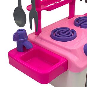 Com seu design cheio de detalhes encantadores, o mini fogão vem com diversos acessórios para tornar a brincadeira ainda mais divertida, como panelas, talheres, frigideiras, pia, entre outros itens que permitem que as crianças preparem e sirvam suas receitas, além disso conta também com baú na parte de baixo do fogão, bastando apenas desencaixa-lo, permitindo que armazene os itens no seu interior, garantir mais organização.