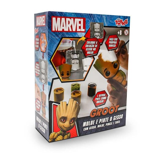 Você já viu como as crianças adoram criar coisas? Imagina só como elas ficariam felizes podendo fazer suas próprias figuras de personagens Marvel e ainda pintar do jeito que quiserem. Com o Kit Molde e Pinte o Gesso, seu filho ou filha pode misturar o gesso, preencher o molde e depois soltar a imaginação nas cores. O kit foi pensado especialmente para ser fácil e seguro, as crianças vão adorar o processo de misturar o gesso e, com um pouquinho de orientação, conseguirão moldar e pintar seus personagens Marvel de forma simples e divertida. Muitos pais se surpreendem ao ver como os pequenos adoram atividades manuais, além disso, é um jeito diferente e educativo de brincar com os personagens que eles já amam. O kit foi projetado para minimizar a bagunça. O gesso em pó vem em saquinhos fáceis de usar e o processo é rápido. Basta cobrir a superfície de trabalho e garantir que a diversão seja tranquila e limpa. As tintas inclusas no kit são atóxicas, seguras e aprovadas para o uso por crianças. É uma atividade criativa e educativa sem preocupações. Tamanho aproximado do molde: 15cm Instruções: Passo 1 - Despeje 3 sachês de gesso em pó (240g) em um recipiente e misture com aproximadamente 170-190ml de água. / Passo 2 - Despeje a solução no orifício da base do molde do personagem e aguarde secar, o que leva cerca de 5 horas. Depois, com muito cuidado, separe as bandejas do molde para retirar a figura de gesso. / Passo 3 - Com o auxílio da ferramenta inclusa, retire os possíveis excessos de gesso para chegar na forma final do personagem. / Passo 4 - Utilize o pincel para pintar seu personagem com as tintas deste kit. Conteúdo: 1 molde, 3 saquinhos de gesso em pó (80g cada), 1 pincel, 1 espátula e 6 potes de tintas (3ml cada). Material: gesso, tinta acrílica e plástico. INMETRO: 004373/2024 Indicação: + 8 anos de idade