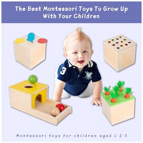 Construção de Madeira Segura e Durável: A Caixa de Permanência de Objetos 4 em 1 é feita de madeira, segura, confiável e durável. O kit de jogo da criança está equipado com um saco de lona que é fácil de transportar.