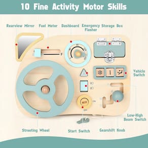 - [Toddler Learning Toys] A prancha ocupada de volante de carro 10 em 1 restaura cenas da vida real para ajudar as crianças a aprender conhecimentos precoces sobre carros e a desenvolver habilidades motoras finas com brinquedos Montessori de madeira.