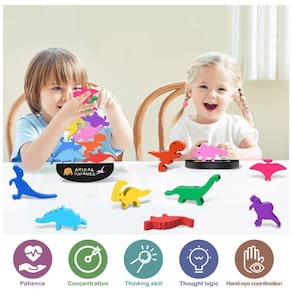 Este brinquedo educativo de aprendizagem consiste em um jogo de empilhar dinossauros que é fácil de jogar, mas requer concentração e raciocínio para ser bem sucedido. Além disso, o jogo ajuda a desenvolver habilidades lógicas, práticas e de paciência nas crianças.