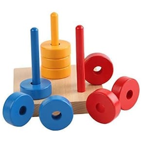 Este é um material Montessori clássico destinado a ser por crianças de 12 a 18 meses. Este material de empilhamento ajuda a criança a desenvolver a coordenação olho mão e a desenvolver a sua compreensão. Esses tipos de brinquedos também auxiliam no desenvolvimento de habilidades de pré escrita.