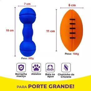 Kit contendo 04 brinquedos: 01 - Halteres 01 - Bola Futebol Americano 01 - Tartaruga P 01 - Bola Lisa Pula Pula 8 cm