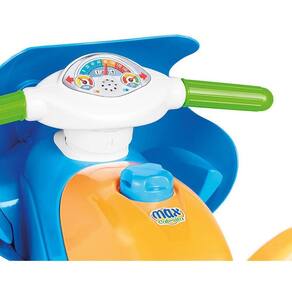 Brinquedo Motoca Triciclo Max Azul Original Calesita 0948 Atenção: Cor Pode variar com a imagem apresentada. Imagens meramente ilustrativas. Max Calesita - Rosa Max Calesita é ideal para proporcionar a criança um passeio e um pedalar muito divertido Desenvolvido com design moderno e arrojado, Max Calesita é uma moto completa para a garotada se divertir. Vem com aro protetor, apoio de pés e empurrador que facilita a direção com maior conforto e segurança. Max Calesita é uma moto 2 em 1 que se destaca por acompanhar o crescimento da criança, vem com buzina para deixar o passeio mais alegre, e possui espaço para guardar brinquedos. Ao tirar os acessórios de passeio, o guidão gira e a criança pode pedalar e desenvolver a coordenação dos movimentos. Conteúdo da embalagem: 1 Max Calesita 1 Haste 1 Empurrador 1 Aro protetor 1 Par de Apoio de Pés 1 Manual de Instruções Dimensões: Altura: 62.4 cm Largura: 50.5 cm Profundidade: 93.4 cm Peso: 7.25 kg Produto Novo e Lacrado com Garantia e Nota Fiscal.