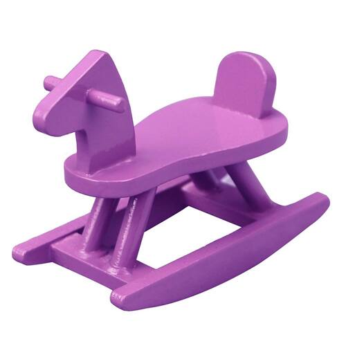 Tamanho: 7x3,5x5,8 cm Material: madeira Peso: 28 g Cavalo de balanço clássico de madeira roxo projetado para decoração de berçário de casa de bonecas em miniatura ou quarto infantil. Feito à mão com madeira durável e bordas lisas, garantindo um acessório em miniatura seguro e realista. Adequado para casas de bonecas e bonecas em escala 1/12, perfeito para adicionar um toque divertido e animado às cenas. Este produto é apenas um modelo de brinquedo, não para uso humano real. Por favor, mantenha-se afastado de crianças pequenas para evitar engolir ou se machucar. Ótimo para brincadeiras de fingir, decorar minicenas e enriquecer coleções de móveis para casas de bonecas.