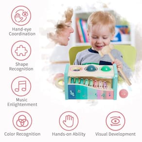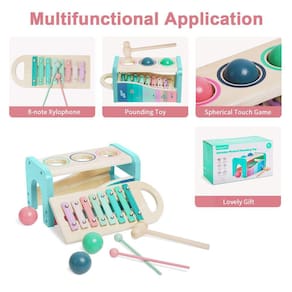 - 🎈 Brinquedos musicais multifuncionais: este xilofone infantil pode ser tocado de várias maneiras. As crianças podem bater na bola para fazê-la cair e fazer sons diferentes. Ou podem pegar o teclado e o xilofone e tocar um solo