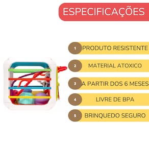 Dê as boas-vindas a uma explosão de diversão e aprendizado com nosso Cubo Multiatividades! Este não é apenas um brinquedo, é uma jornada sensorial completa para o seu pequeno explorador. Prepare-se para testemunhar sorrisos contagiantes e momentos preciosos de descoberta enquanto seu bebê mergulha neste mundo de estímulos.