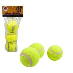 Brinquedo para cachorro bola de tênis kit com 3 unidades, material reforçado para cães que gosta de brincar.