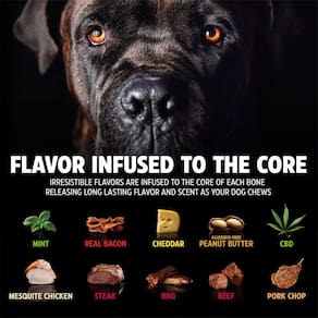 - Sabor de menta irresistível infundido no núcleo de cada osso, liberando sabor e aroma de longa duração enquanto seu cão mastiga.