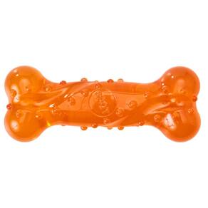- Inclui um osso de laranja canelado de 12,7 cm com aroma de manteiga de amendoim. Ótimos como brinquedos para cães pit bull que não têm barulho, o que os donos de cães podem preferir.