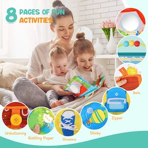- Livro para bebês macio e seguro: os livros de tecido são feitos de tecido seguro com algodão pulverizado embutido para suavidade, costura forte, inodoro e não tóxico, e um espelho inquebrável, tornando-o seguro para bebês. Além disso, a superfície de tecido macio é confortável para as mãozinhas do bebê segurarem. Brinquedos infantis perfeitos de 0 a 3 a 12 meses.