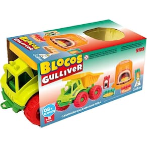 Gulliver Activity Mini Caminhão Caçamba com 8 Blocos e Adesivos Pizza.