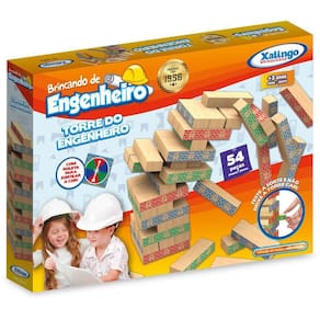 Original desde 1956, o brincando de engenheiro diverte gerações o torre do engenheiro é composto de 54 peças em madeira reflorestada e tinta atóxica. O jogo contribui para o desenvolvimento do pensamento lógico e auxilia nas noções de espaço e coordenação motora da criança, podendo ser utilizado tanto individualmente quanto em grupo. Indicado para crianças acima de 3 anos.