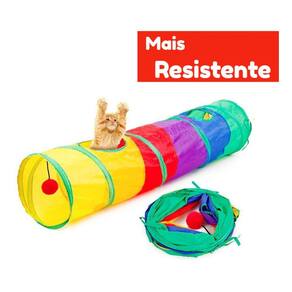 Túnel para gatos - Brinquedo para Pets.Uma forma divertida de entreter nossos bichanos. O túnel é feito de material super leve (Nylon) e argolas para dar a estrutura.É pura diversão! Gatos são curiosos e gostam de lugares para explorar, conseguem enxergar as cores azul, verde, roxo e amarelo, então esse túnel colorido acaba se tornando mais atrativo.Acompanha uma bolinha de tecido macio anexada em uma das saídas do túnel, o que estimula o instinto e as brincadeiras do gato.Excelente para o bichano gastar suas energias e ficar feliz!Tamanho:1,30cm de comprimento X 25cm de diâmetro Marca: GroupX Commerce