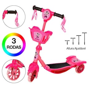 Patinete de tres rodas, cestinha, criança, infantil, dm toys, led, feminino, rosa, meninos, brinquedo, meninas, minnie, mouse, mickey, disney, desenho Marca: Não Informado