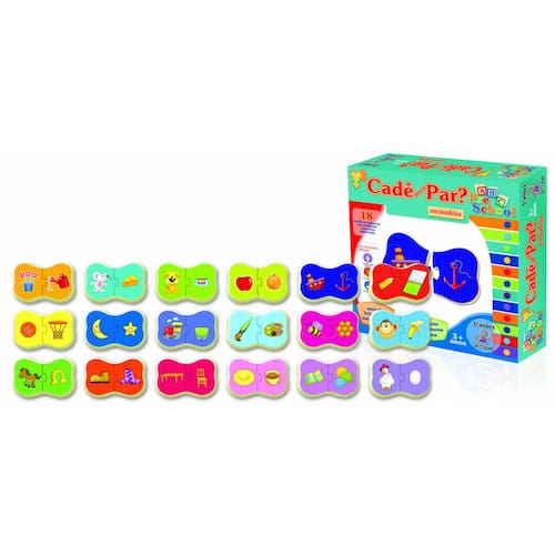 Cadê meu par. 36 peças em madeira reflorestada estimula a criatividade, coordenação motora, comunicação, sociabilização, raciocínio lógico e concentração. As crianças encontram o par correto, e se divertem com as lindas imagens. Eles estão sempre juntinhos. Quem são 18 quebra cabeças com 36 peças. Recortes arredondados. Conteúdo da embalagem cadê meu par. Com 18 quebra-cabeça, 36 peças.