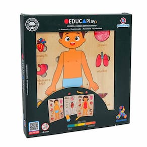 Quebra-Cabeça Corpo Humano da linha Educaplay, as crianças embarcam em uma jornada fascinante pelo interior do corpo humano! De maneira lúdica e envolvente, elas aprendem a identificar e nomear as partes externas e internas do corpo, reconhecendo órgãos e suas funções enquanto montam as peças. Além de estimular o raciocínio lógico, a coordenação motora fina e a ampliação do vocabulário, o brinquedo desperta a curiosidade sobre o funcionamento do corpo, promovendo o autoconhecimento e incentivando hábitos saudáveis desde cedo. Uma maneira inteligente e divertida de aprender brincando!