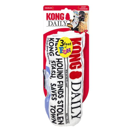 Brinquedo Jornal Kong Daily traz uma edição especial de 1.06cm de comprimento que permanece fechada com uma tira para se tornar o brinquedo ideal para puxar, e se desdobra para proporcionar diversão satisfatória de agitação. Este diário de alegria oferece um “resumo canino” com 6 apitos que prolongam a brincadeira, além de um lado macio e aconchegante, perfeito para uma soneca após se atualizar com as notícias.