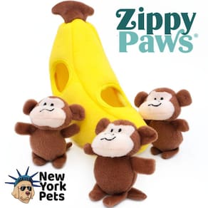 O Zippy Burrow™ - Pelúcia Macaco e Banana proporcionarão horas de diversão deliciosa para o seu cachorro.