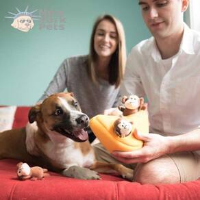 E seu cachorro vai adorar brincar tentando encontrar os pequeninos primatas que estão lá dentro! Assim que o seu cachorrinho brincalhão tiver tirado todos eles, ele implorará para que você os coloque de volta no lugar várias vezes para horas de diversão!