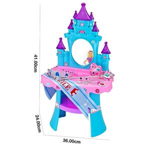 A penteadeira tem um espelho perfeito para as princesas se admirarem. Suas cores são vibrantes e harmonizam entre si.