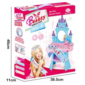 Brinquedo Penteadeira Musical Castelo Princesa Com Luz E Som A Penteadeira Musical Baby Style tem um lindo formato de Castelo digno de uma Princesa Um camarim próprio com mais de 30 acessórios e jóias, e claro o mastro e uma coroa com detalhes apaixonantes para ficar ainda mais linda. A penteadeira tem um espelho perfeito para as princesas se admirarem. Suas cores são vibrantes e harmonizam entre si. Tudo pensado para o faz de conta estar à altura desta princesa.