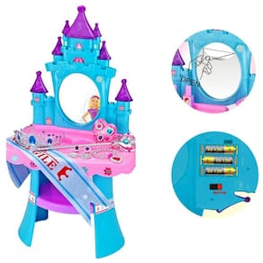 Brinquedo Penteadeira Musical Castelo Princesa Com Luz E Som A Penteadeira Musical Baby Style tem um lindo formato de Castelo digno de uma Princesa Um camarim próprio com mais de 30 acessórios e jóias, e claro o mastro e uma coroa com detalhes apaixonantes para ficar ainda mais linda. A penteadeira tem um espelho perfeito para as princesas se admirarem. Suas cores são vibrantes e harmonizam entre si. Tudo pensado para o faz de conta estar à altura desta princesa. Sem regras:pode montar e posicionar os adereços da forma que preferir. Conta com um lindo sistema de som e luz para dar um charme mais especial para a brincadeira seja em casa ou ao ar livre Diferente das todas as penteadeiras, além de divertida, elegante e cheia de detalhes, também é educativa. Se desenvolve aprende brincando Vantagens de um Brinquedo 100% manual: - desperta a adaptação social e interação com a família e amigos; - expressão e comunicação; - imaginação, Intelecto e Criatividade; - estimula a Coordenação Motora; - aprendizado pela repetição; - cria relações com o espaço à sua volta; - incentiva e induz à autonomia da criança em montar e desmontar seu próprio brinquedo; - Exercita o senso de Organização; - menos Ansiedade e Mais Percepção do tempo; - Exercita o físico e o mental, colaborando com a memória; - MUITA ALEGRIA e DIVERSÃO - Uma Criança mais feliz. Especificações: Produto Certificado pelo INMETRO n°04182/2020 : 3 meses Composição: Plástico PP- 100% Atóxico Peso: 1,100kg Dimensões Produto Aberto: A41cmx L36cm x C24cm Dimensões do Produto na Caixa: A48cm x L38,5cm x C11cm Não recomendável para crianças menores de 3 três anos Marca: Baby Style Cores predominantes: Turquesa, roxo e rosa. Produz luz e som. Necessita de 3 pilhas AA NAO INCLUSAS Ean: 4079668629096