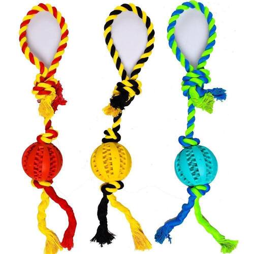 Acompanha o produto: - 1 Brinquedo Pet Dental Play para Morder Bolinha Corda com Alça 7x50cm Garantia: - 3 meses