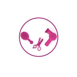 1 secador, 1 tesoura, 1 escova e 1 cachorrinho para cuidar e se divertir.