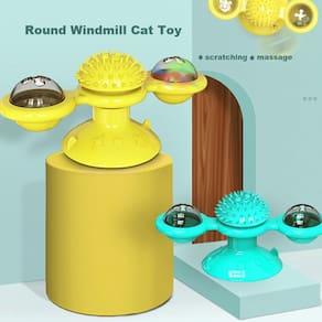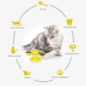 Quando o moinho de vento é movido suavemente, ele gira, fazendo com que os gatos adorem não tirar as suas patas dele, e há um dispositivo para esfregar o pêlo e o rosto no meio.